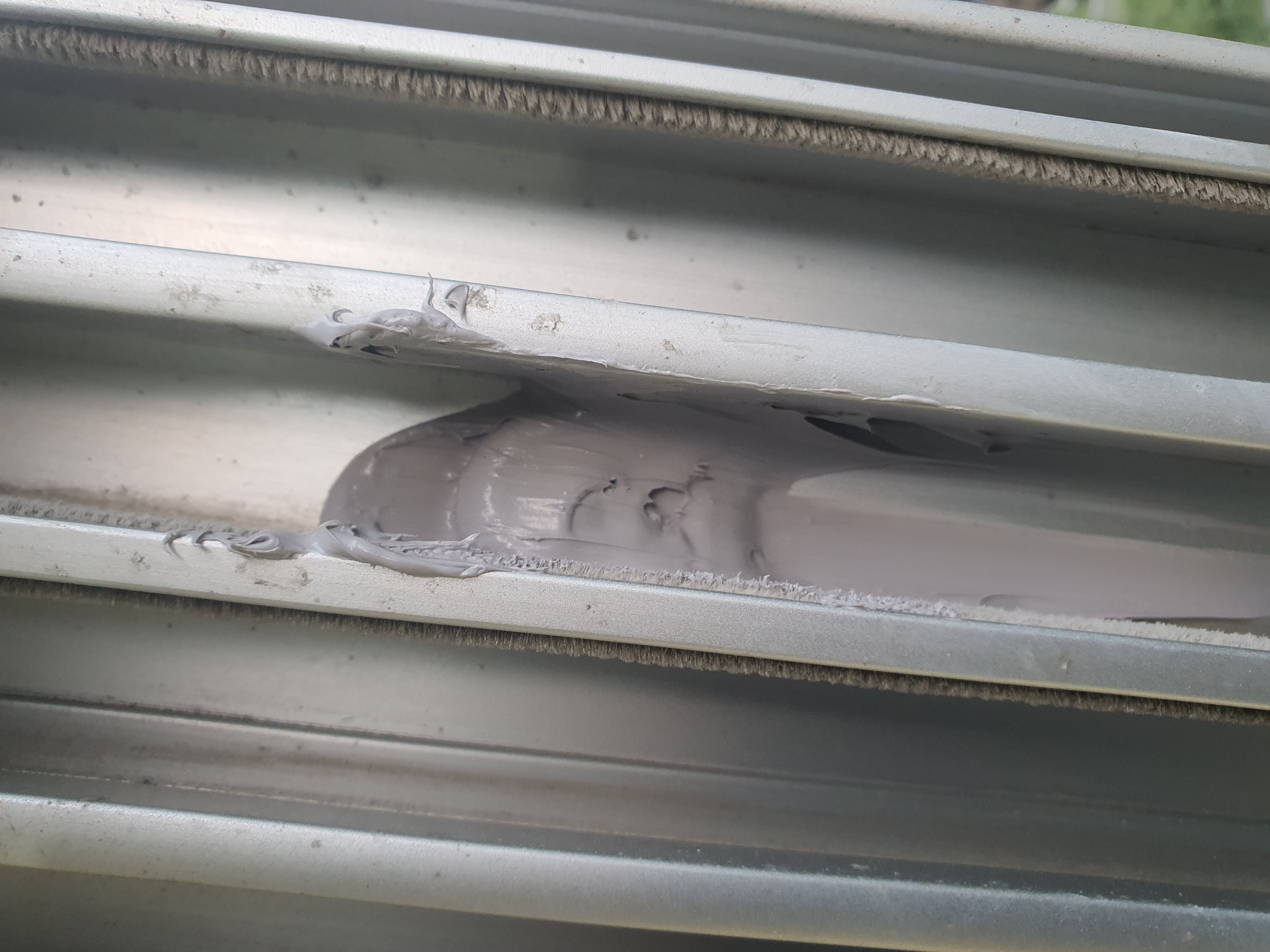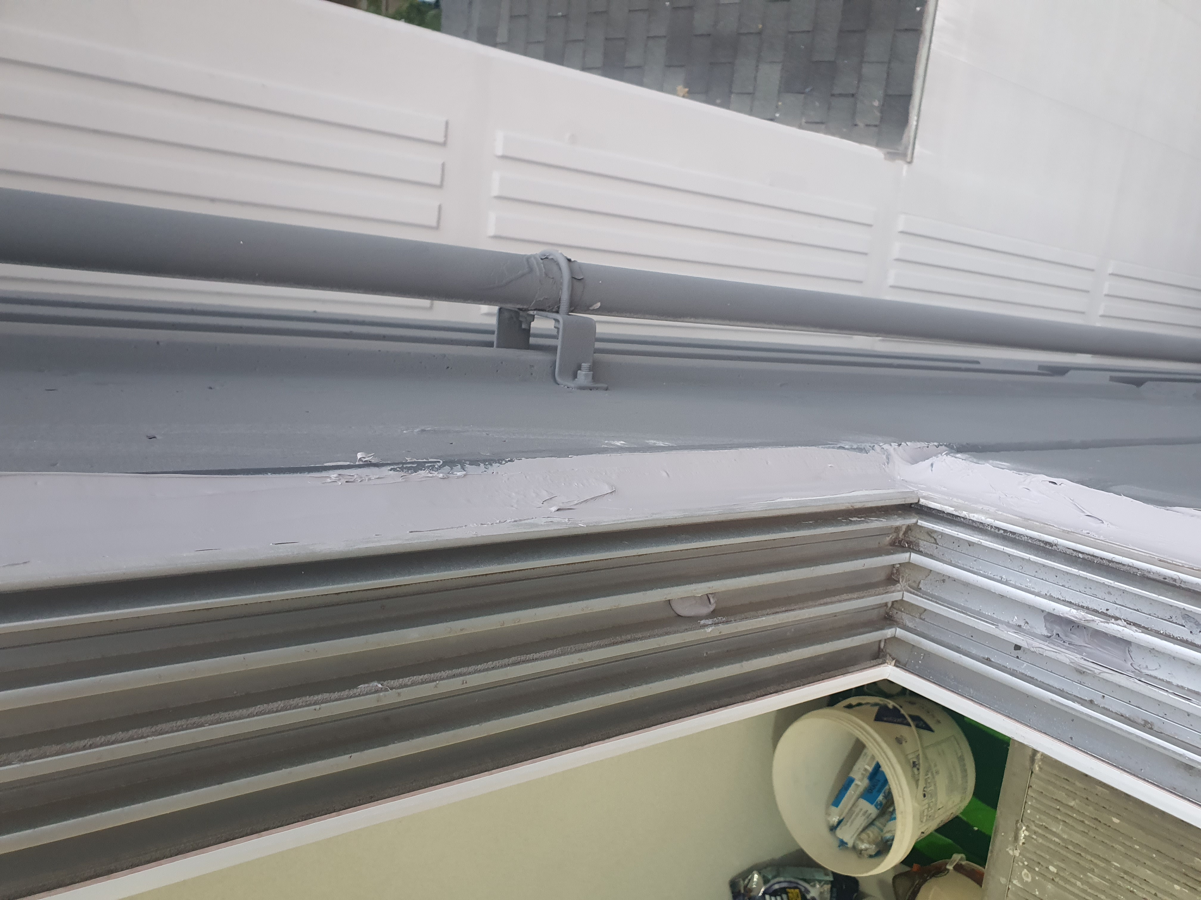 샷시 고정용 칼블럭 자리도 누수의 원인중 하나여서 실리콘 도포 했습니다.