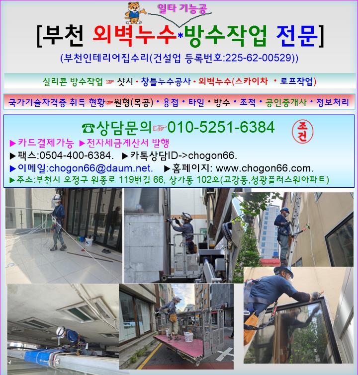 부천 하이샷시 창틀 누수 실리콘 방수작업 박사_ 부천인테리어집수리의 실리콘 작업팀입니다. 누수 원인부분을 찾아 방수작업하는 것도 중요하지만, 미래(장래) 발생가능한 부분도 있는지 확인(체크)하여 누수 원천 차단하는 작업까지 병행해야 소비자의 만족도가 높아집니다.