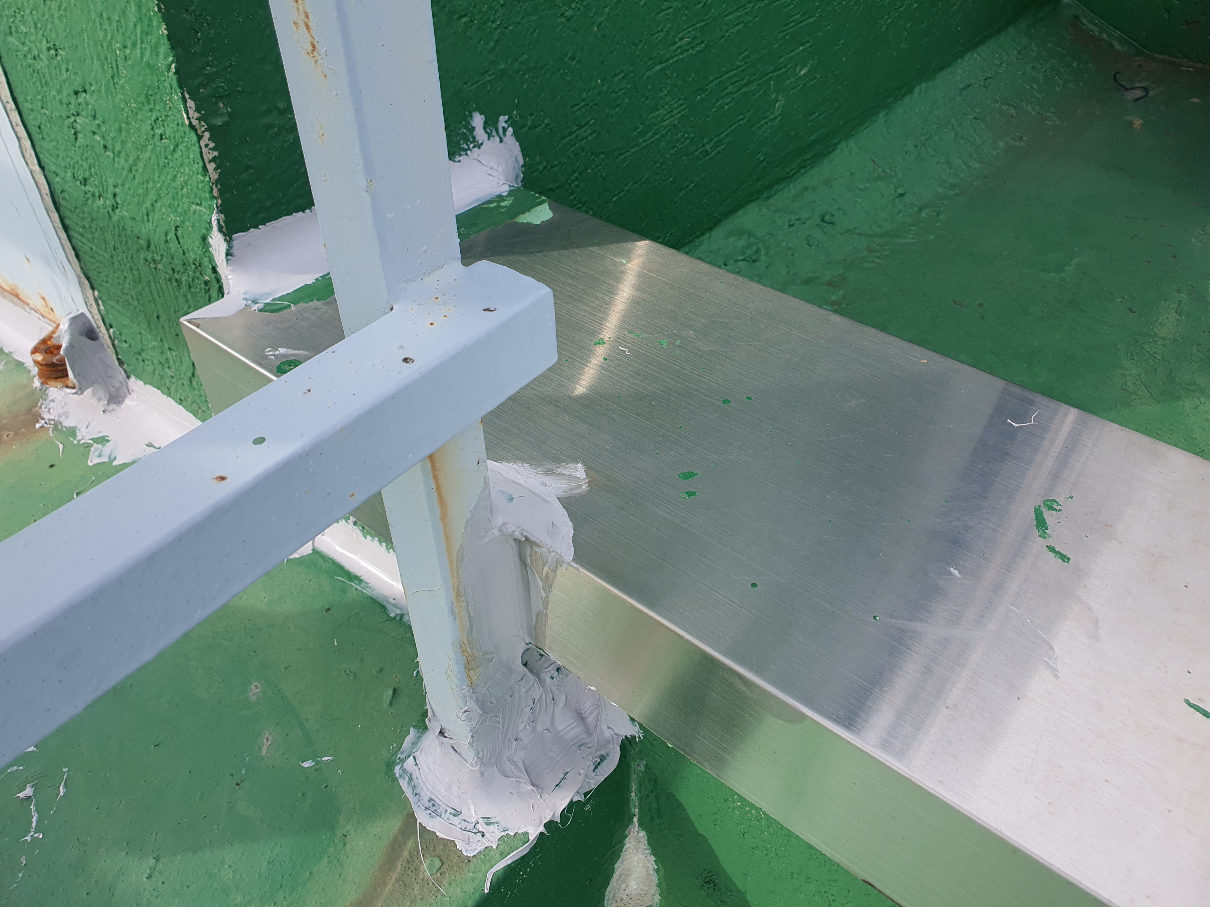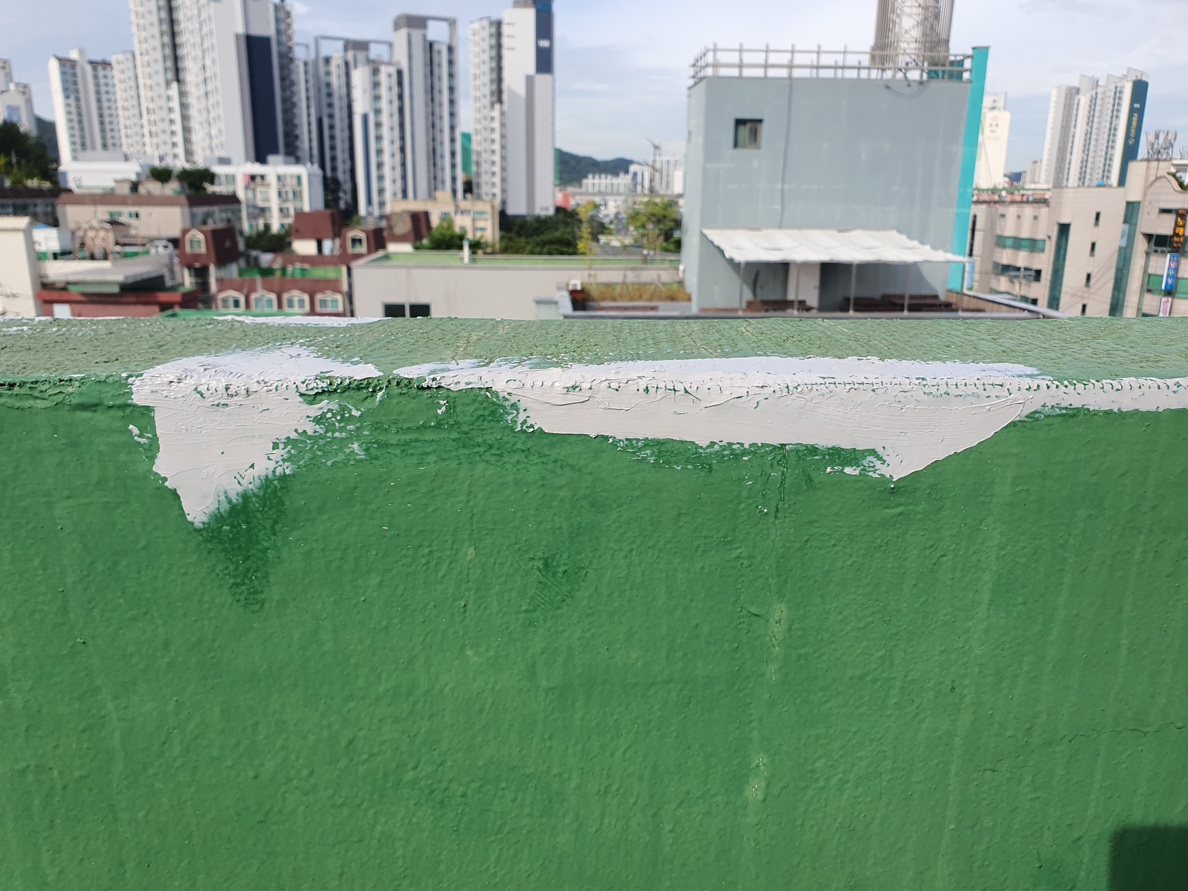 부천 옥상방수작업 전문_ 부천인테리어집수리의 방수팀입니다. 기존 우레탄 방수층이 노후되어 부분 보수 작업 했습니다.